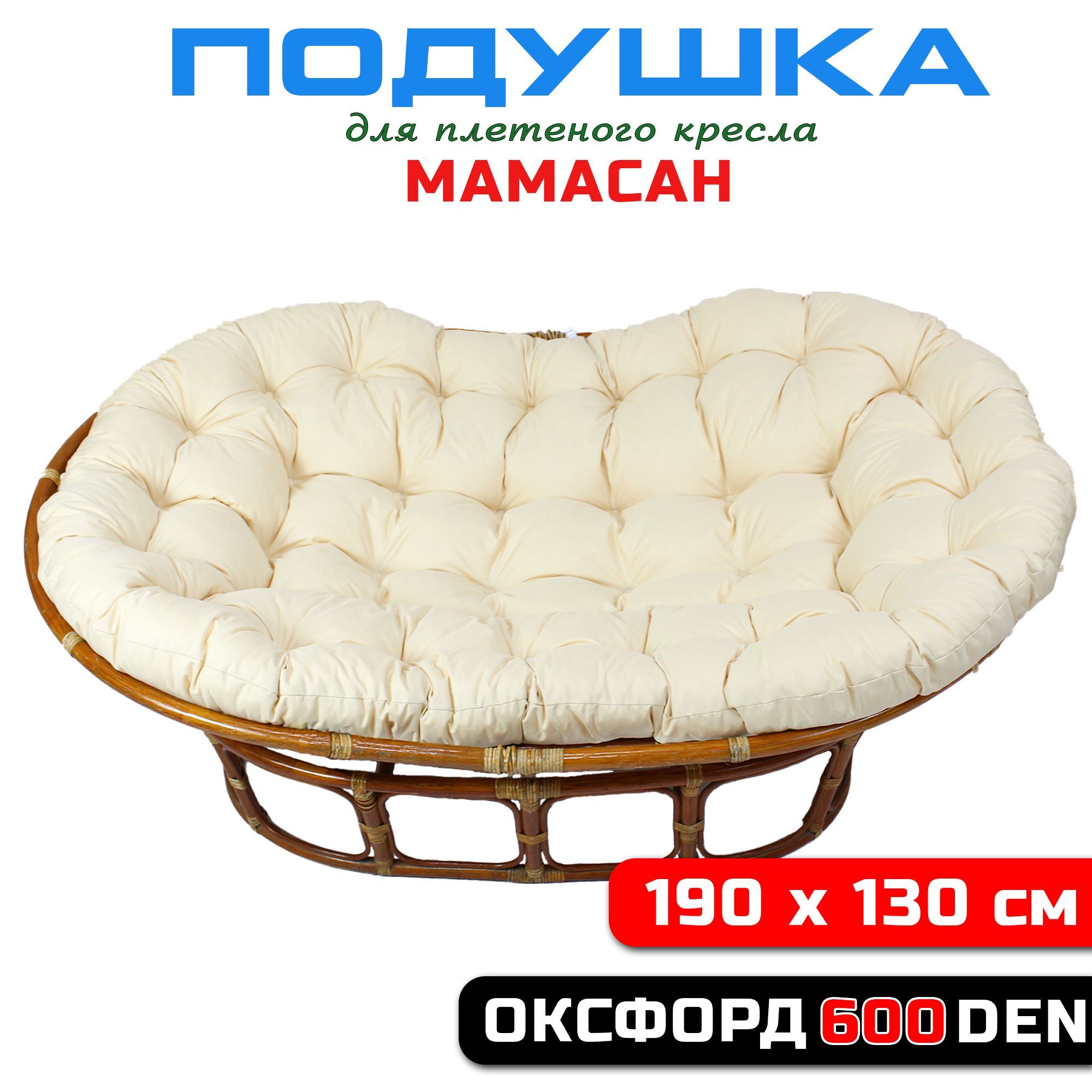 Краткое описание «Подушка для дивана Мамасан, 190х130 см, слоновая кость»