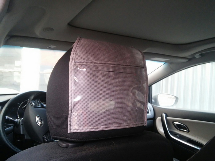 Аксессуар, который изготавливает производитель Тент-чехол, надевается на верхнюю часть спинки кресла автомобиля – подголовник. Они шьются из оксфорда, ПВХ-материала, оксфорда. Имеют фиксаторы в виде резинок, ремешков, лент и липучек. Могут иметь разные размеры, цвет, тип крепления. Крепятся к сиденью резинками, ремнями, фиксаторами. Являются не только эффективным способом носителей рекламы, но и защитой подголовника от пыли, грязи, истирания, прямых солнечных лучей.